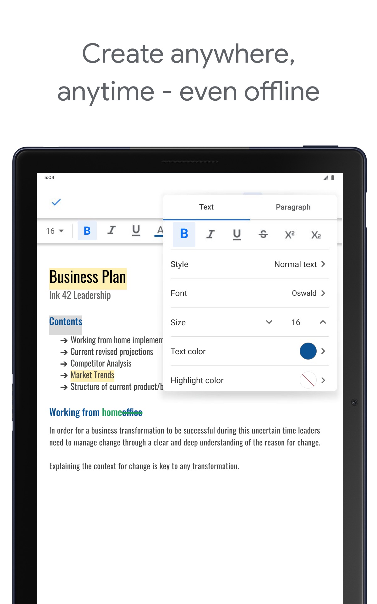 Google Docs เป็นแอปที่มีฟังก์ชั่นให้ใช้งานได้เพียบ เหมาะกับสายที่ทำงานเขียนเป็นหลักเลย ไม่ว่าจะทำงานเขียนรายงาน หรือจะทำสไลด์งานก็ได้เหมือนกัน โดยที่แอปนี้มีฟังก์ชั่นในการแปลภาษาได้ทุกภาษา ซึ่งสะดวกมาก ๆ ไม่ต้องไปเปิดแอปแปลภาษาให้เสียเวลาเลยนะ นอกจากนี้แอปยังได้เพิ่ม AI เข้ามาเพื่อให้ทำงานสไลด์และงานเขียนได้สะดวกขึ้นด้วย