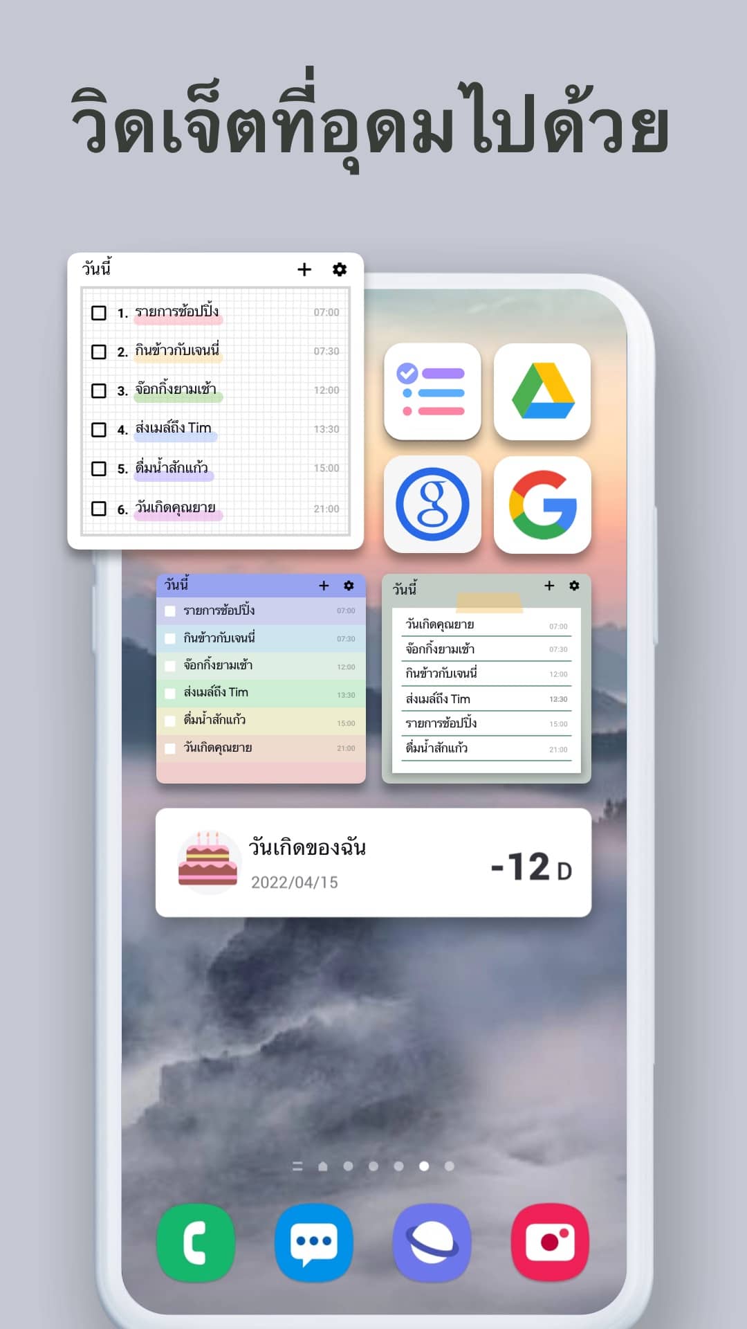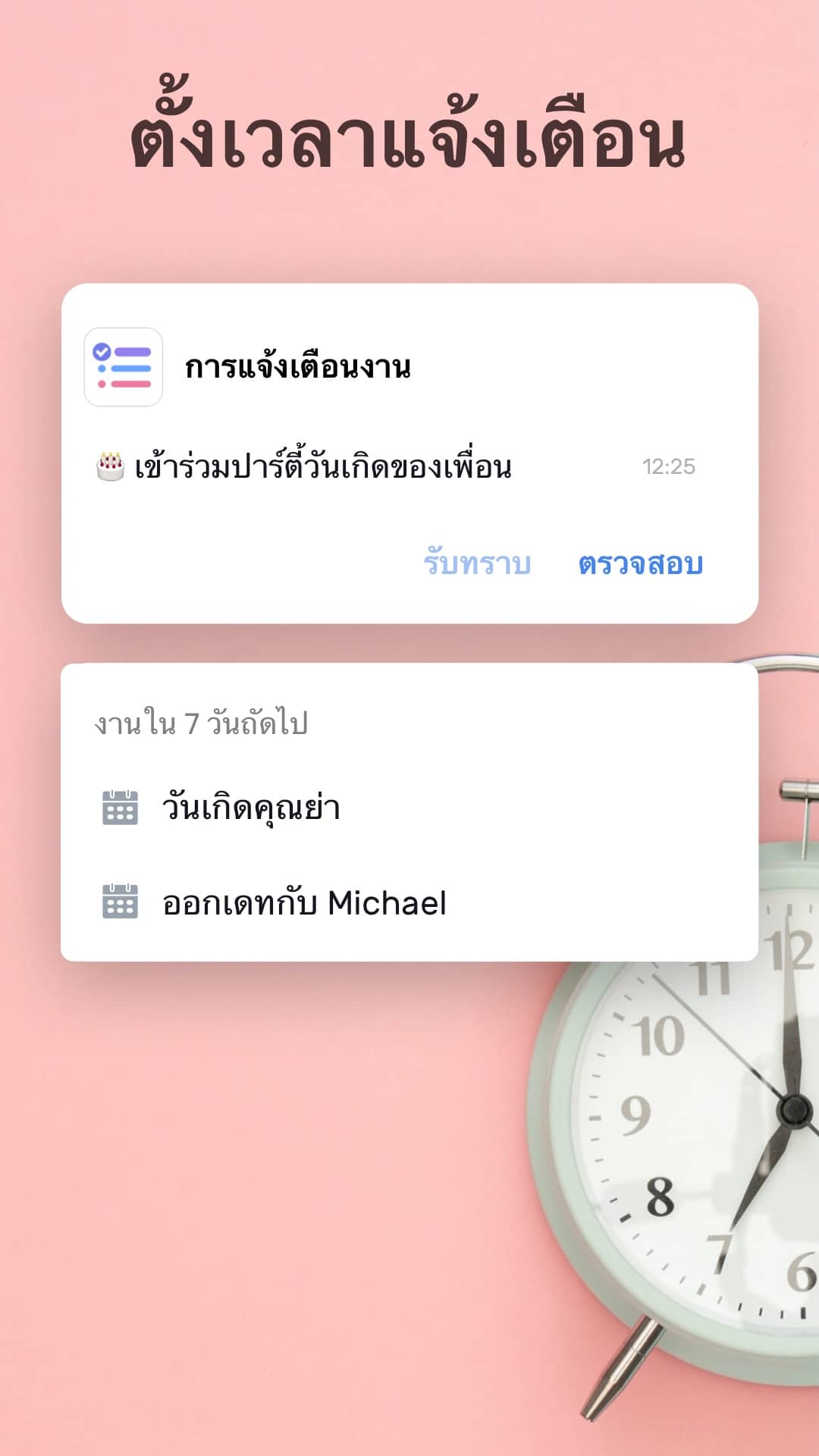 To Do List แอปนี้จะช่วยให้เราวางแผนการทำงานหรือกิจวัตรในแต่ละวัน โดยที่แบ่งหมวดหมู่ต่าง ๆ ได้ แถมยังตั้งแจ้งเตือนได้ด้วยนะ และตัวแอปยังมีสีที่ดูมินิมอลทำให้ดูน่าใช้ นอกจากนี้ยังตั้งเป็นวิตเจ็ตหน้าจอได้ด้วยนะ