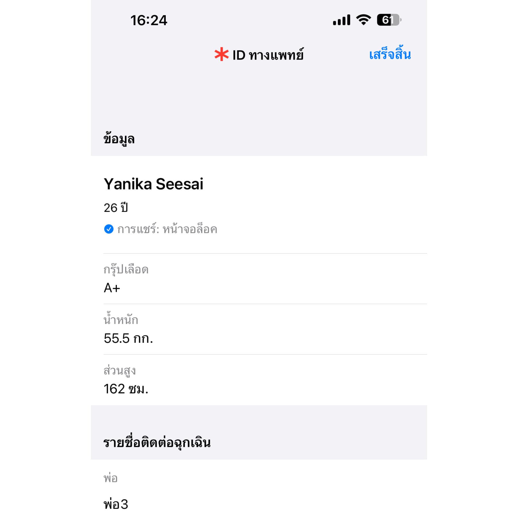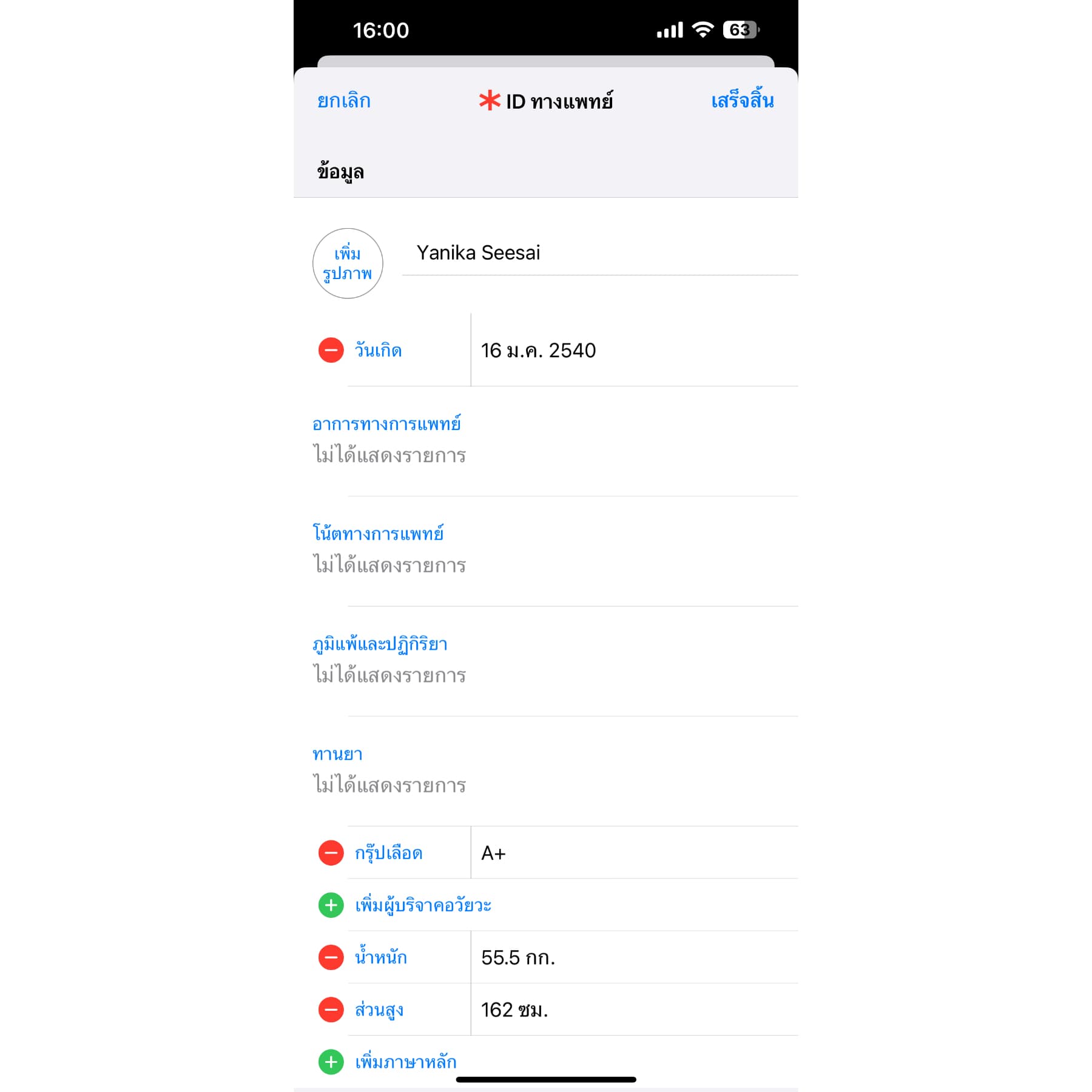 ID ทางแพทย์ช่วยให้ข้อมูลเกี่ยวกับตัวเรา เช่น ข้อมูลโรคประจำตัว อาการทางการแพทย์ และรายชื่อติดต่อฉุกเฉิน ข้อมูลนี้อาจเป็นสิ่งจำเป็นเมื่อเกิดเหตุฉุกเฉิน เพราะ iPhone และ Apple Watch ของเราสามารถแสดงข้อมูลนี้เพื่อให้ข้อมูลกับคนที่เข้ามาช่วนเหลือเราในกรณีฉุกเฉินได้