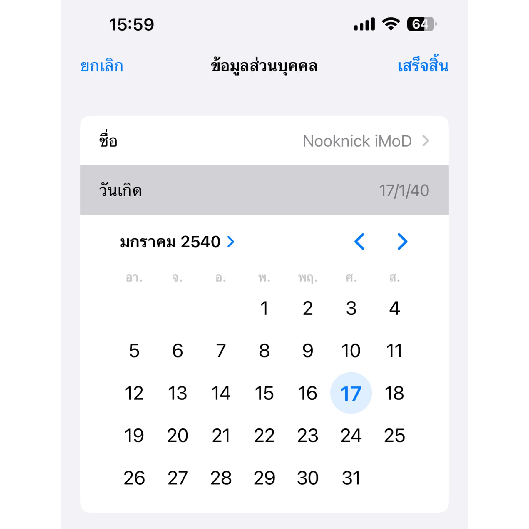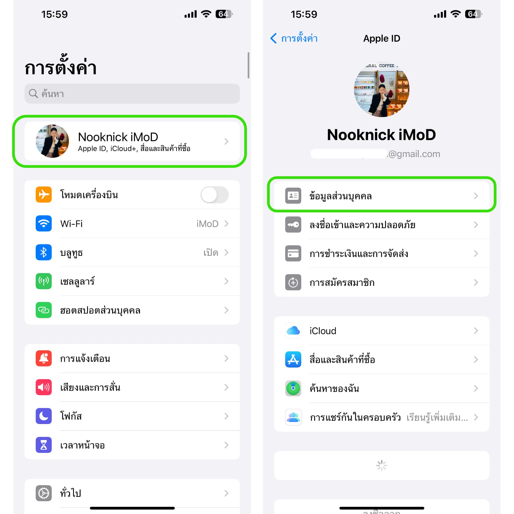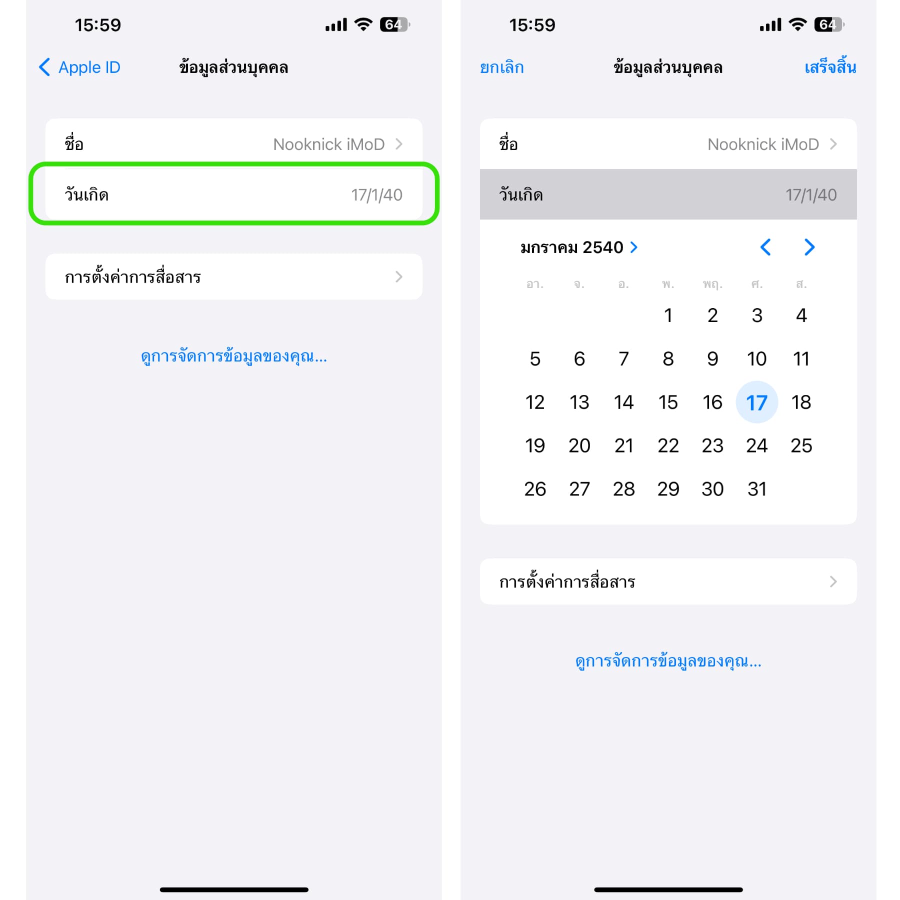 สามารถเข้าไปตรวจสอบข้อมูลวันเกิดได้โดยไปที่ แอปการตั้งค่า > แตะที่ Apple ID > ข้อมูลส่วนบุคคล