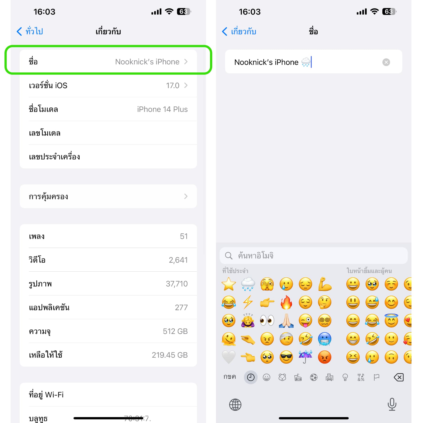 7.เปลี่ยนชื่อเครื่อง iPhone