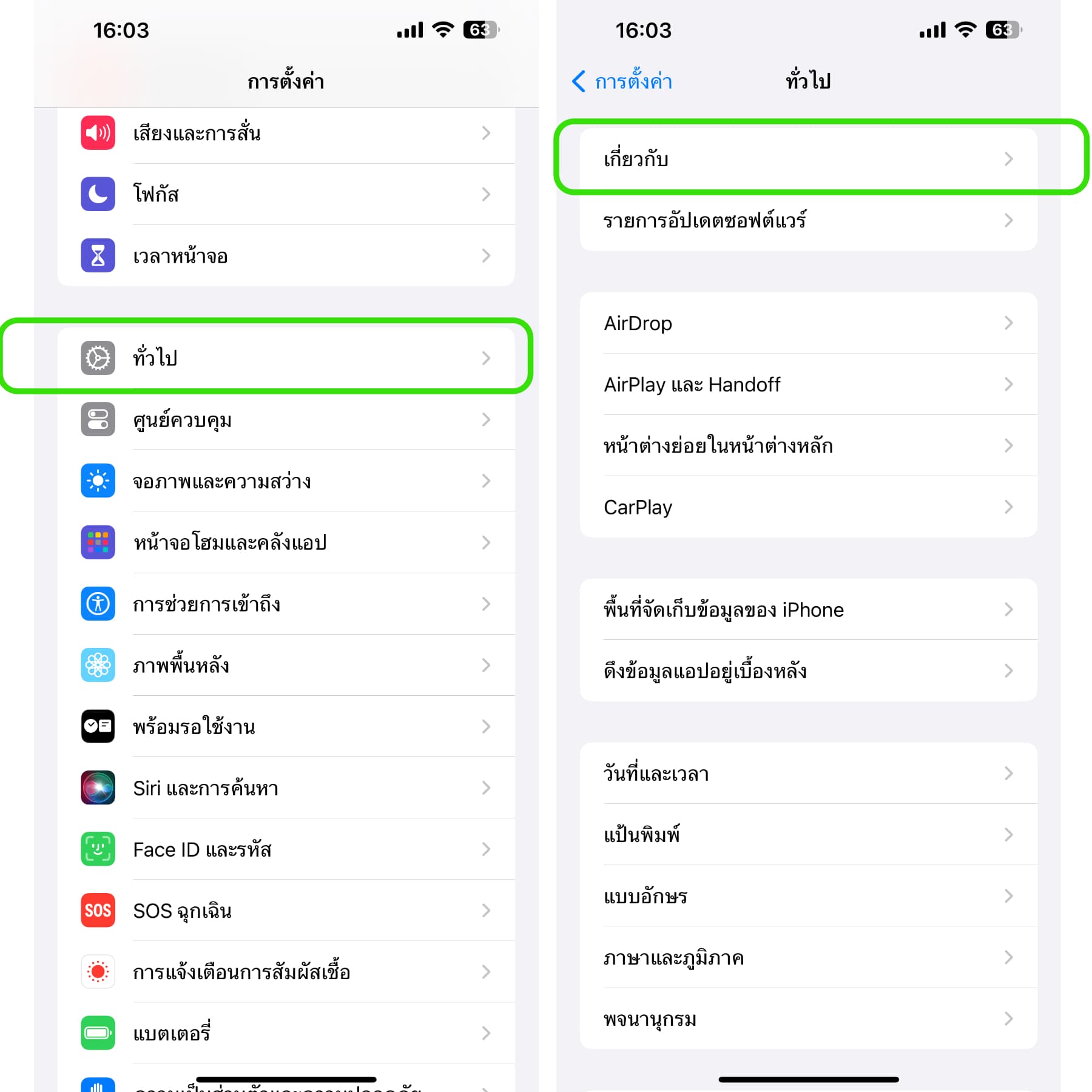 เข้าไปตั้งค่าได้ที่ แอปการตั้งค่า > ทั่วไป > เกี่ยวกับ