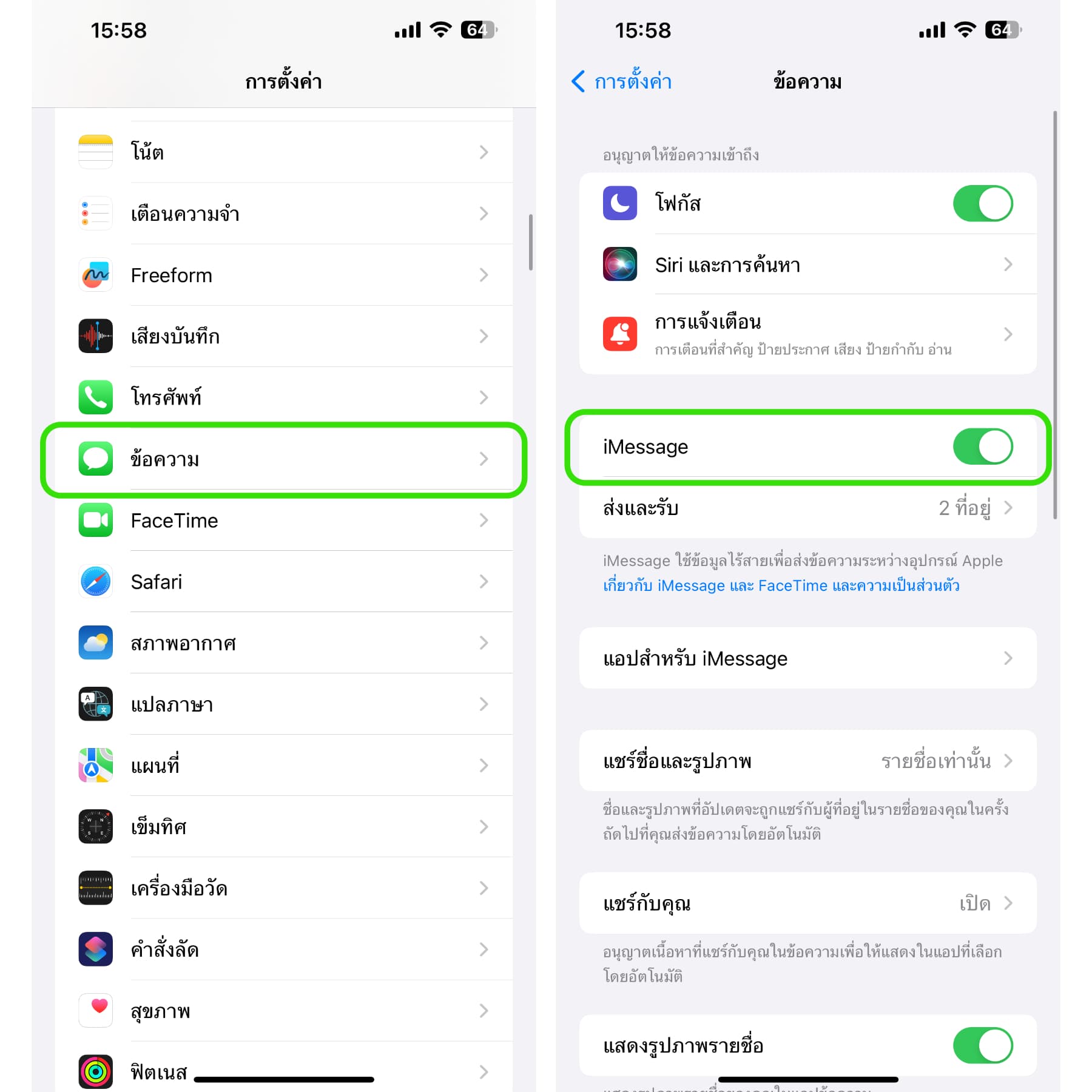แอปการตั้งค่า > ข้อความ > เปิดใช้งาน iMessage