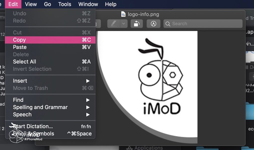 หากต้องการใส่โลโก้สวย ๆ ให้กับเว็บไซต์ให้เปิดรูปภาพไอคอนในแอป Preview แล้ว เลือก Edit > Copy