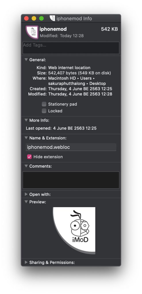 เปิด Get Info ที่ URL ที่เราลากมาวางบน Desktop