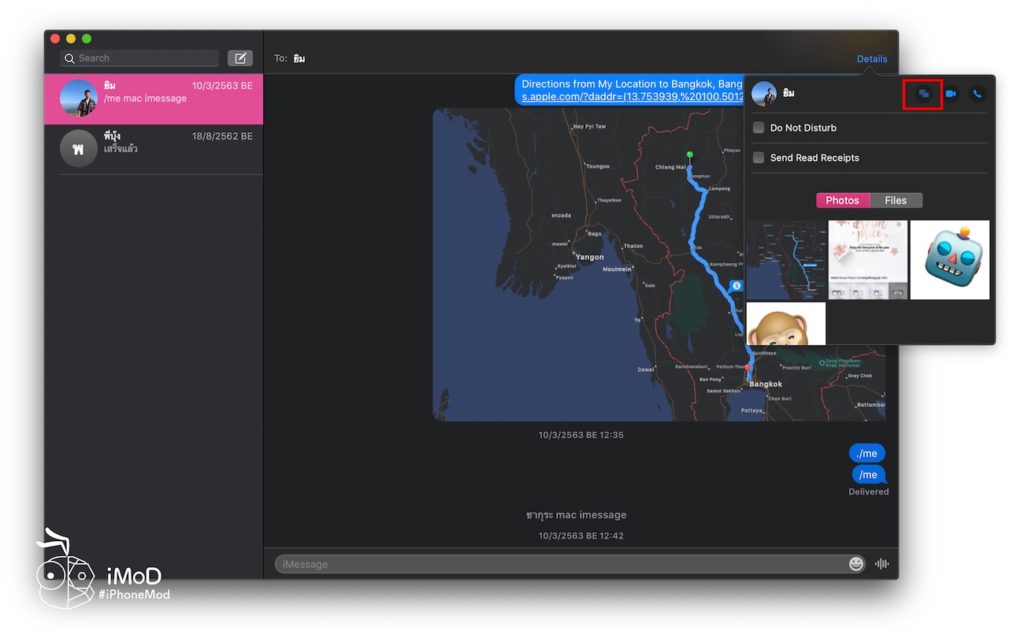 ไปที่แอปข้อความ (Message) > เลือกผู้ติดต่อที่ต้องการ > คลิก Detail แล้วเลือกไอคอน Share Screen