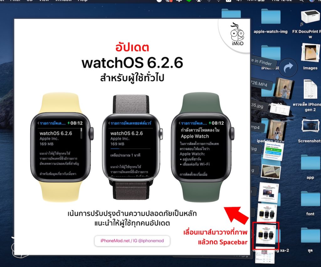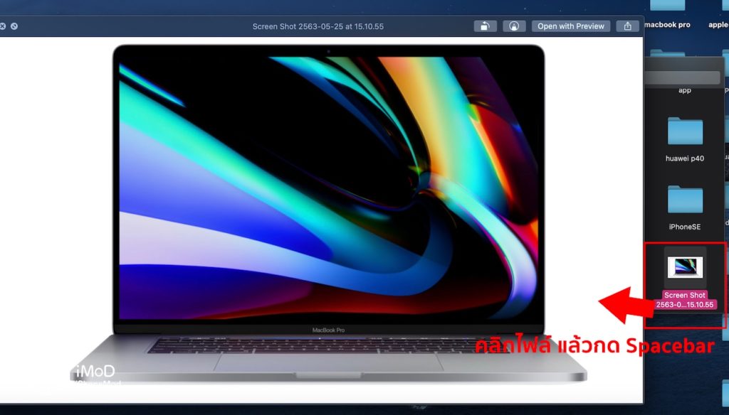 หรือถ้าอยากดูพรีวิวใน Finders ก็สามารถคลิกที่เอกสารหรือรูปภาพ 1 ครั้งแล้วกดปุ่ม Spacebar เราก็จะเห็นพรีวิวของเอกสารนั้น ๆ หากต้องการปิดพรีวิวก็กดปุ่ม Spacebar คืนนั่งเอง โดยไม่ต้องดับเบิ้ลคลิกแล้วกดกากบาท
