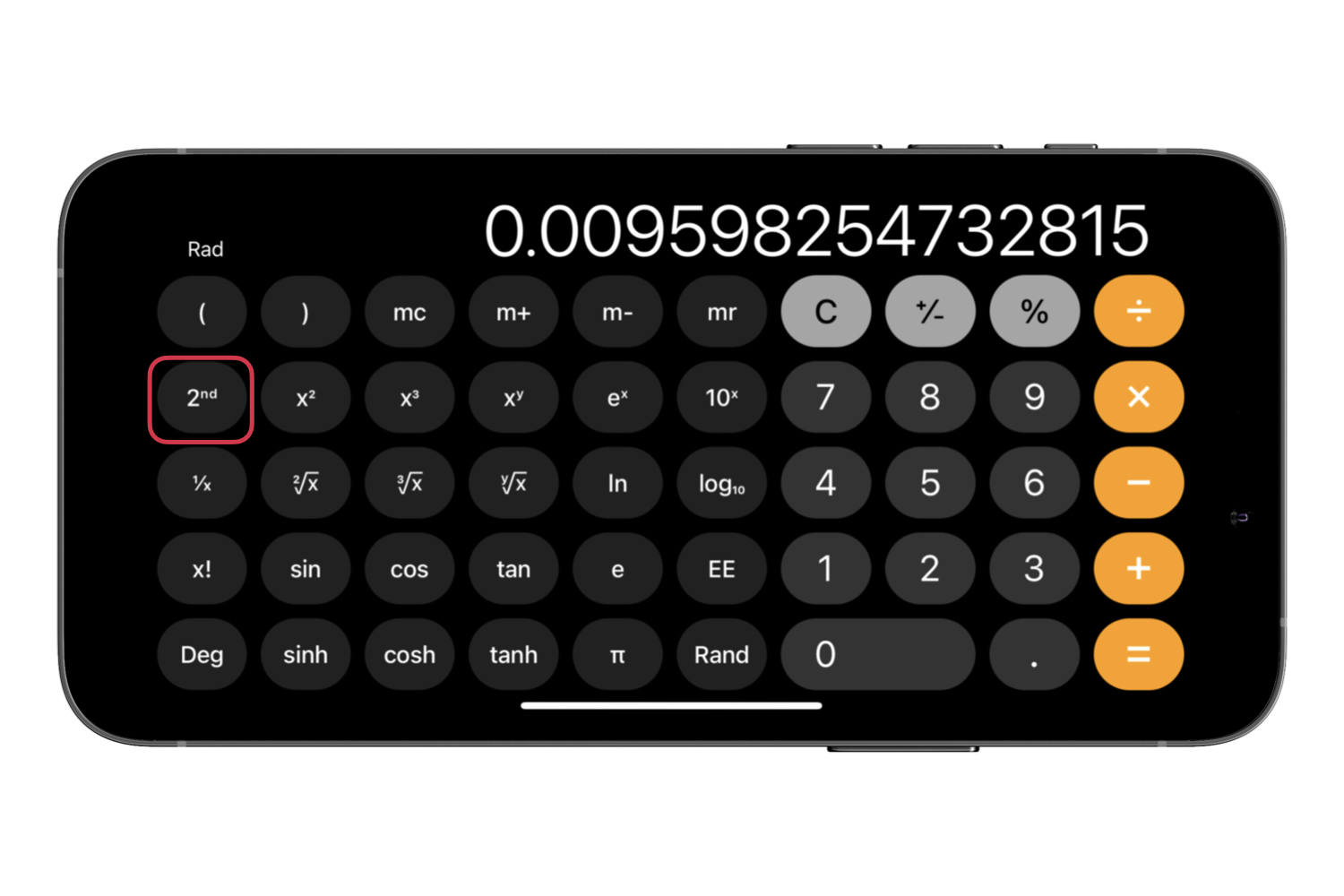นอกจากนี้ เรายังสามารถดูตัวเลือกการคำนวณอื่น ๆ เพิ่มเติมได้ ด้วยการแตะปุ่ม 2 ยกกำลัง nd เพื่อใช้ตัวเลือกเพิ่มเติม หากต้องการกลับมาใช้ตัวเลือกก่อนหน้านี้ ก็แตะปุ่มเดิมอีกครั้ง