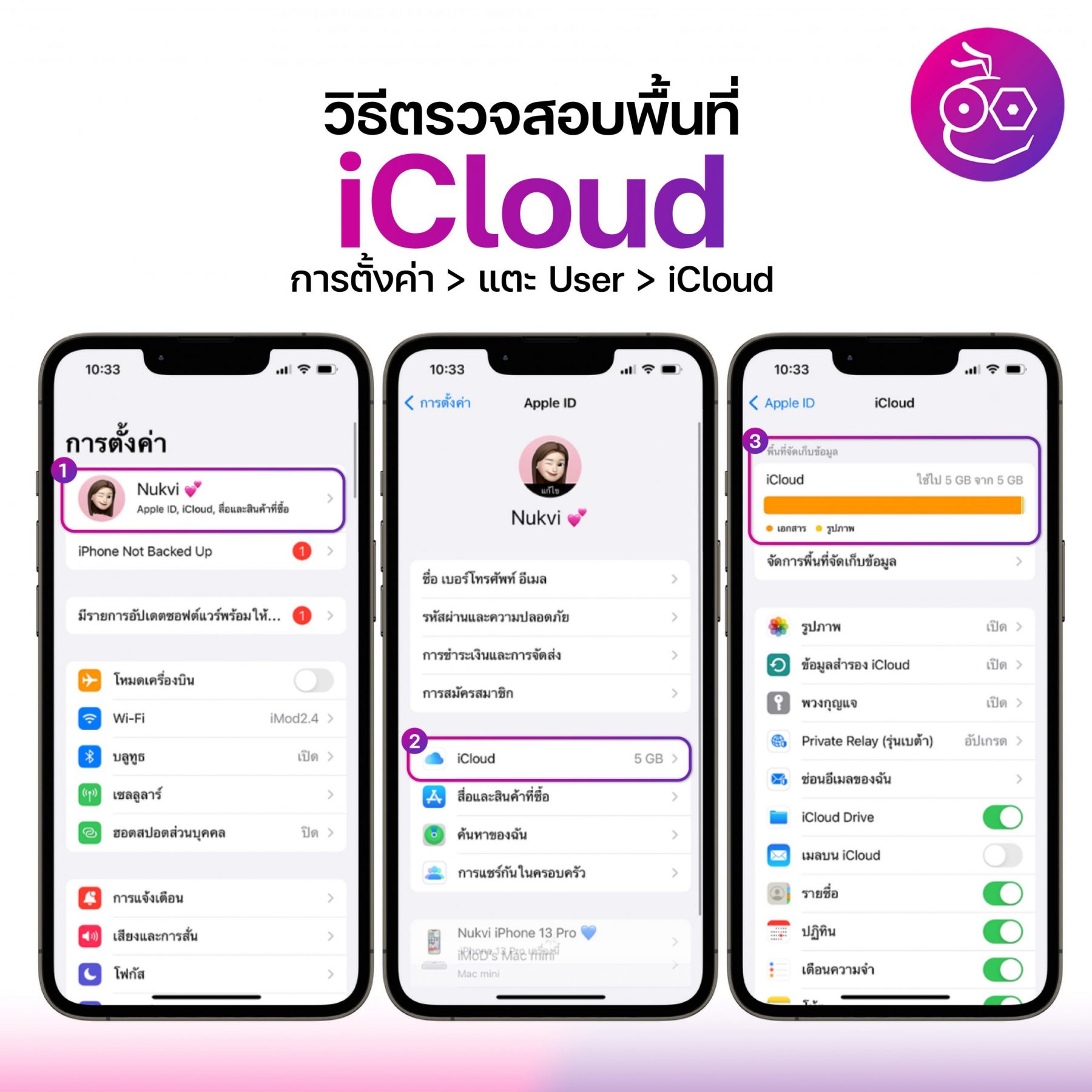 วิธีตรวจสอบพื้นที่ iCloud