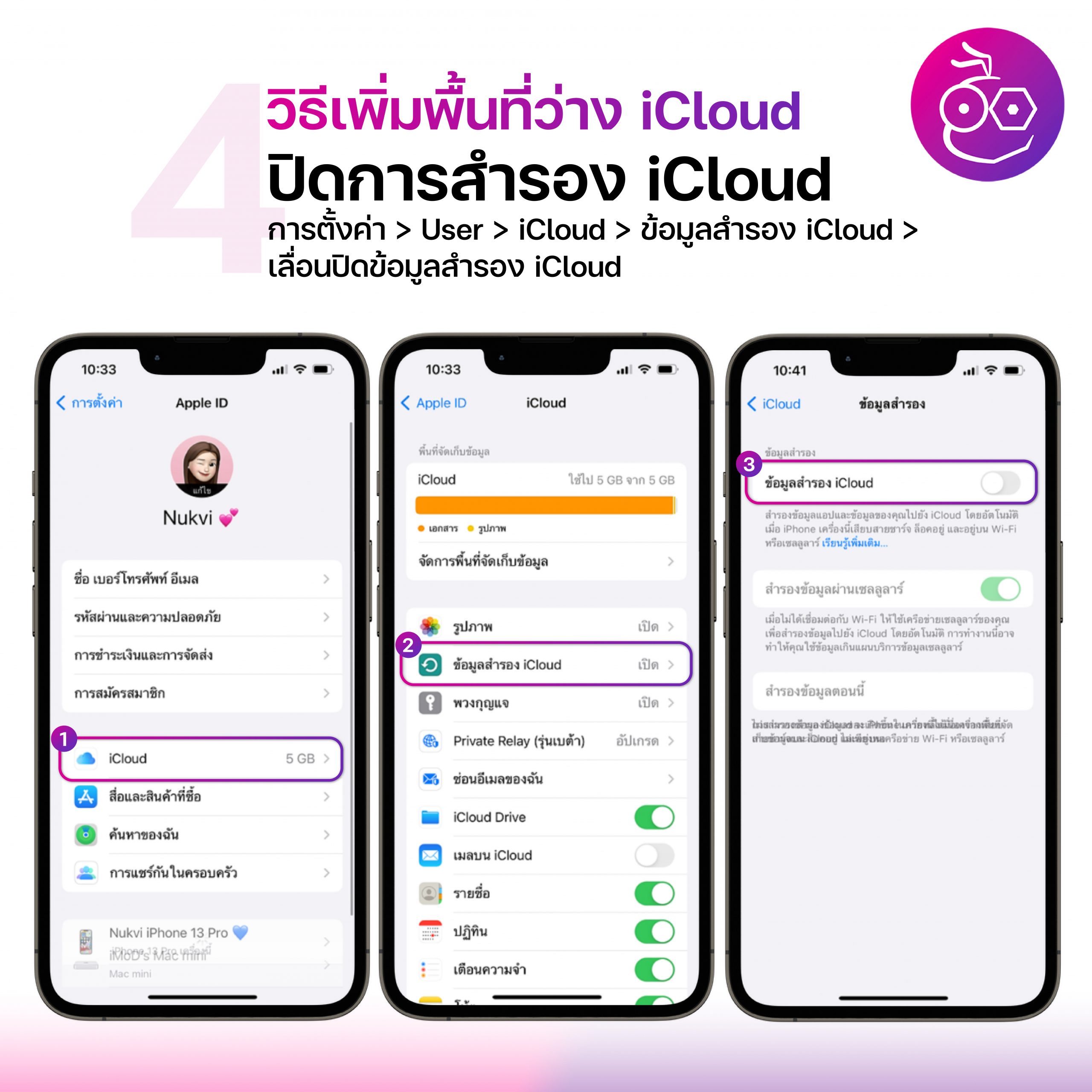 4.ปิดข้อมูลสำรอง iCloud
