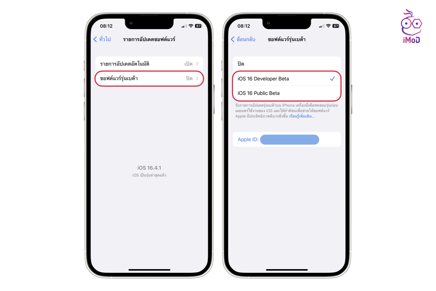แตะ ซอฟต์แวร์รุ่นเบต้า (Beta Updates) เลือกเบต้าที่ต้องการ
