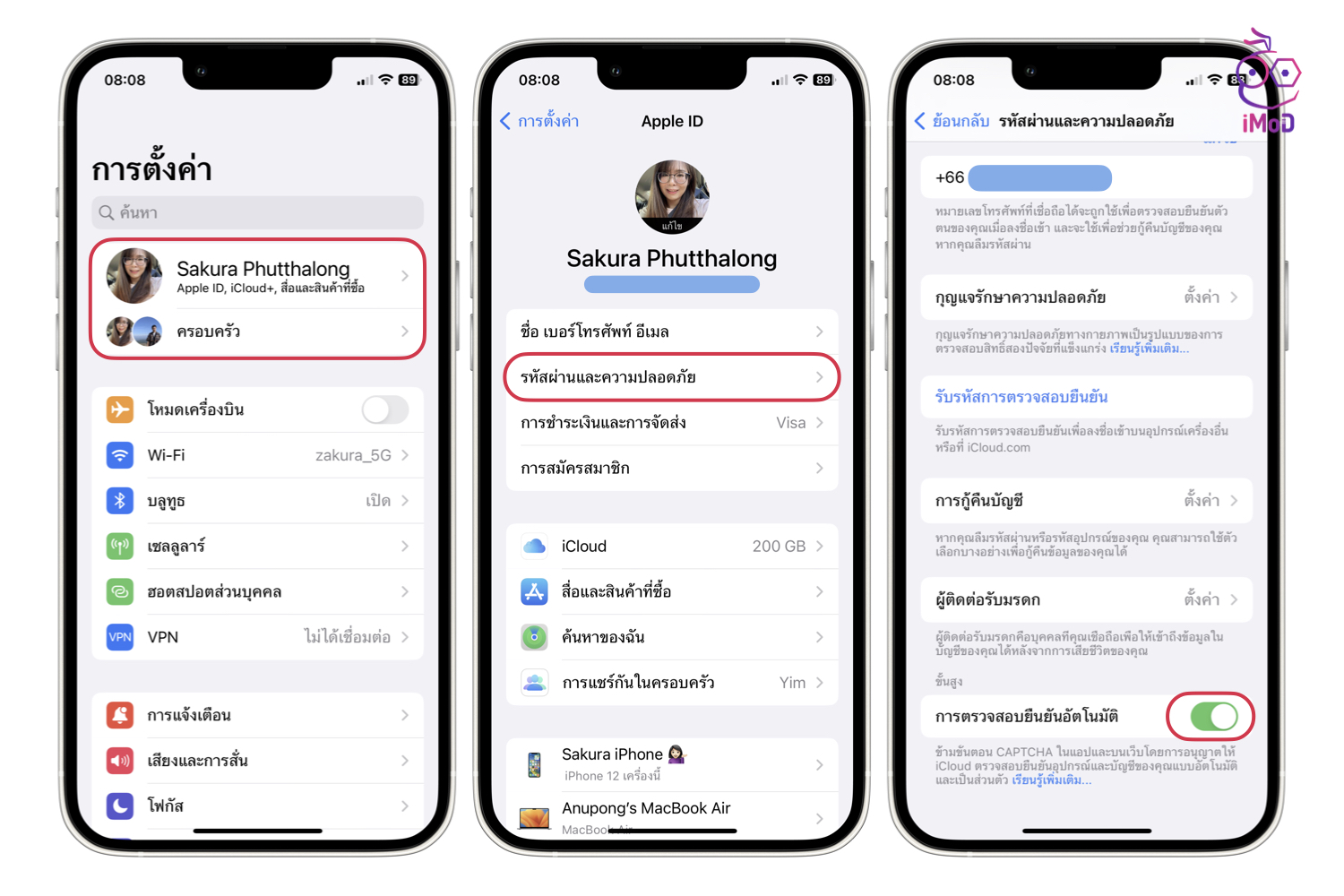 เปิดใช้งานได้ที่ การตั้งค่า (Settings) > Apple ID > รหัสผ่านและความปลอดภัย (Password & Security) > เปิด การตรวจสอบยืนยันอัตโนมัติ (Automatic Verification)