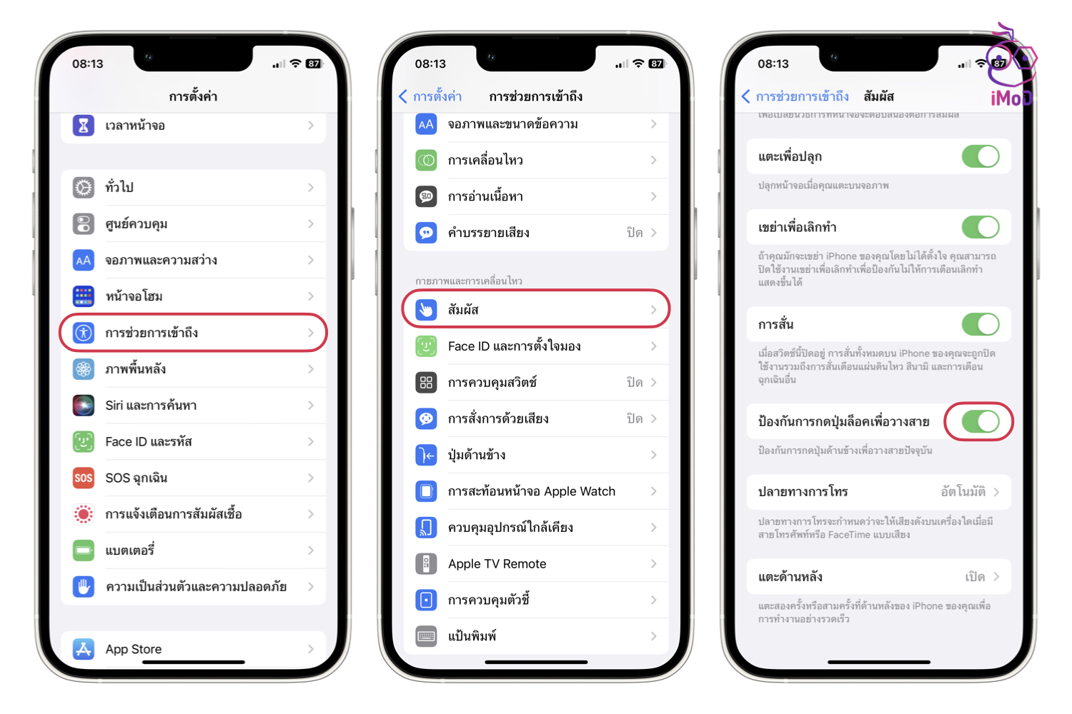 เวลาที่เรากำลังสนทนาสายโทรศัพท์ แล้วมือเผลอไปกดปุ่มด้านข้าง (Power) โดยไม่ได้ตั้งใจ ทำให้ iPhone วางสายไป เราสามารถตั้งค่าป้องกันได้