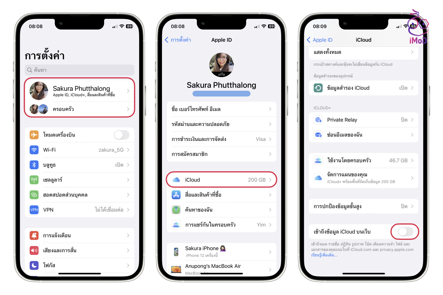 ไปที่ การตั้งค่า (Settings) > Apple ID > iCloud > ปิด การเข้าถึงข้อมูล iCloud บนเว็บ (Access iCloud Data on the Web)