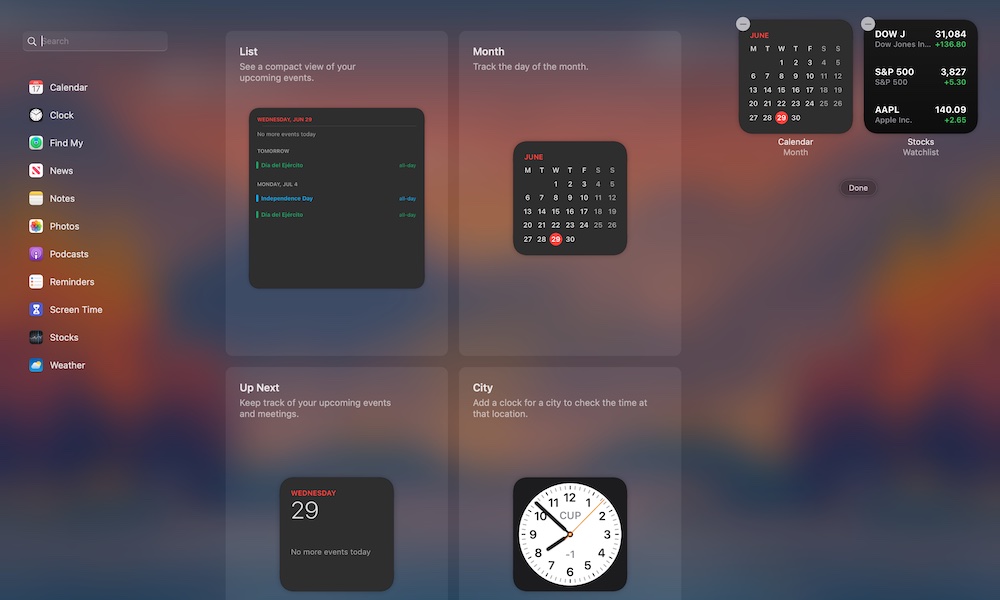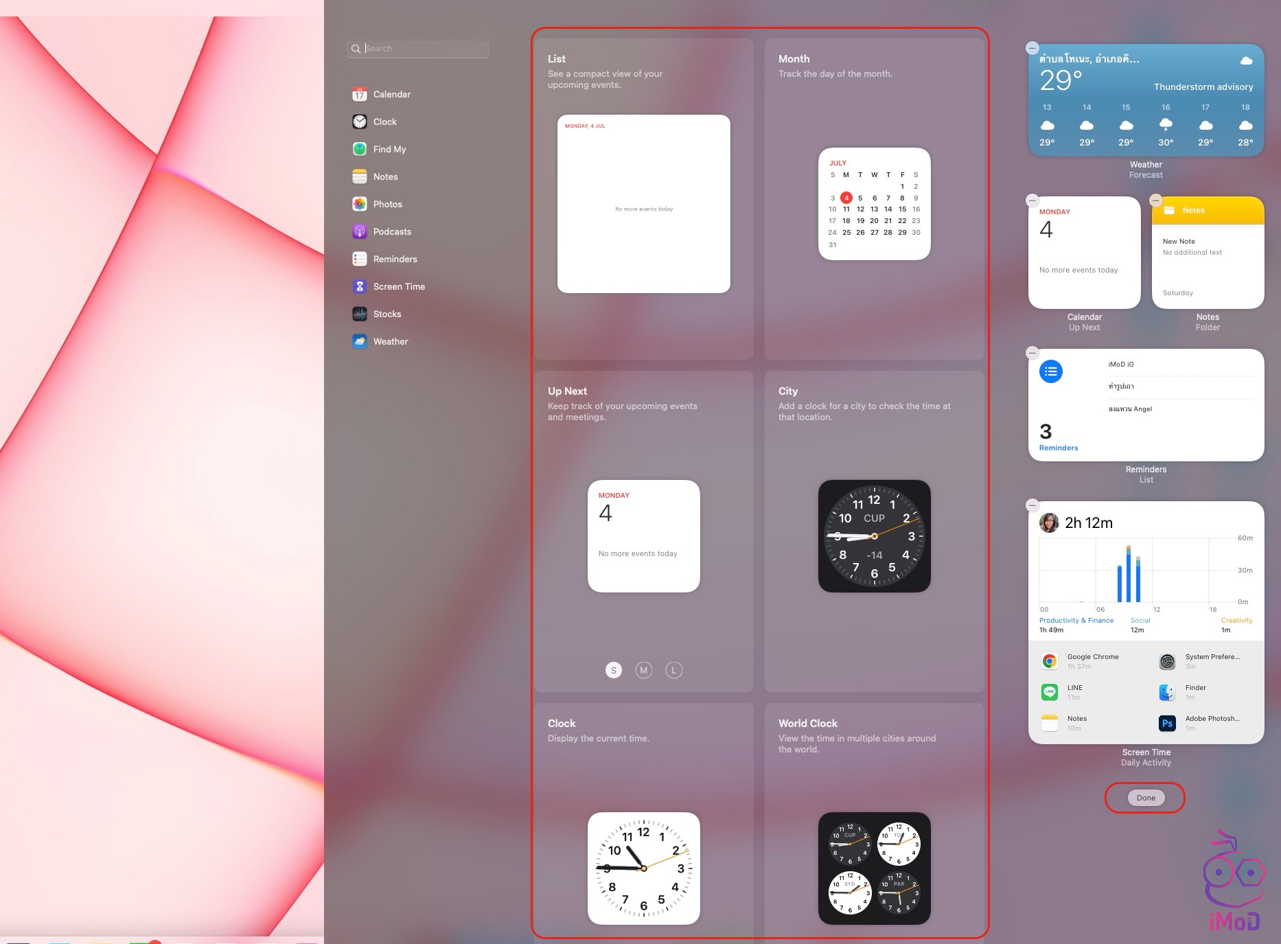 เราสามารถตั้งค่าแสดงวิดเจ็ตบน Mac ได้คล้าย ๆ กับ iPhone, iPad แต่วิดเจ็ดจะไม่ได้แสดงบนหน้าเดสก์ท็อป ซึ่งจะแสดงในส่วนของศูนย์การแจ้งเตือน แนะนำว่าข้อมูลที่เราอยากดูบ่อย ๆ ก็เลือกมาตั้งเป็นวิดเจ็ตได้ เช่น พยากรณ์อากาศ โน้ต ปฏิทิน การเตือนความจำ เป็นต้น