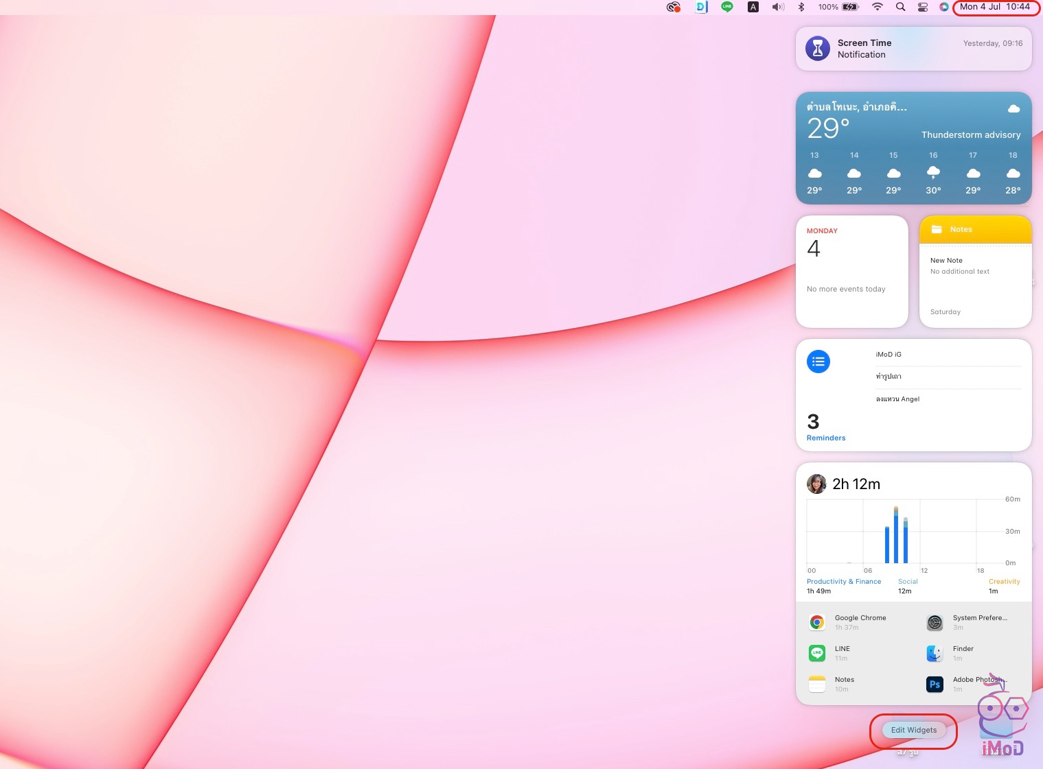 การตั้งค่าวิดเจ็ตก็ทำได้ง่าย ๆ เลย เพียงคลิกที่ส่วนวันที่และนาฬิกา มุมบนขวา > เลือก Edit Widgets
