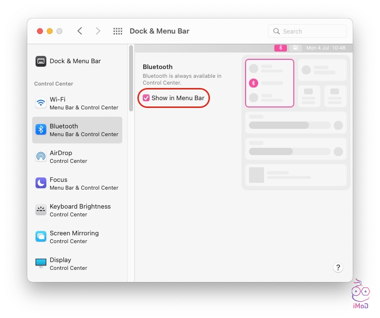 เลือก Control Center ด้านซ้าย แล้วเลือกเมนูที่จำเป็นให้แสดงบน Menu Bar ได้เลือก