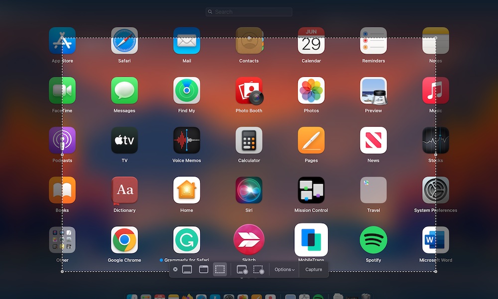 - Command + Shift + 5 สามารถจับภาพหน้าจอได้หลายแบบ โดยจับภาพหน้าจอทั้งหมด เลือกบางพื้นที่ เลือกเฉพาะหน้าต่าง และอัดวิดีโอได้ ซึ่งเลือกพื้นที่อัดวิดีโอหรือจะอัดทั้งหน้าจอก็ได้