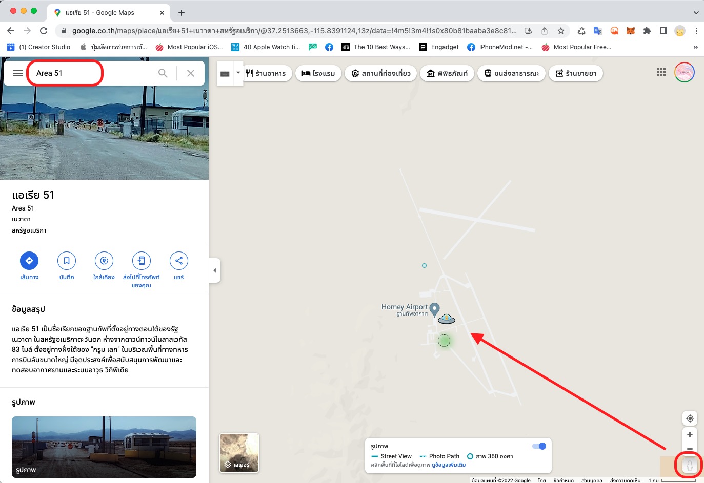 สร้างสีสันกันอีกนิด! สนุกไปกับ Eater Egg เล็ก ๆ น้อย ๆ ของ Google Maps สำหรับเว็บไซต์ เมื่อเราค้นหา Area 51 ในเนวาดา แล้วลองลากรูปคนเข้ามาในบริเวณนั้น ก็จะเห็นไอคอนเปลี่ยนเป็นรูปจานบิน