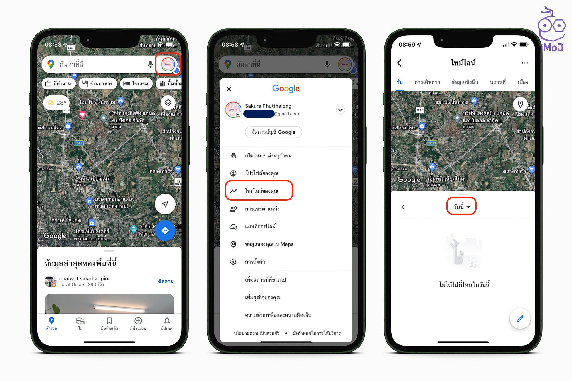 ถ้าหากเราอยากจะทราบว่าที่ผ่านมาเราได้เดินทางไปที่ไหนมาบ้าง ก็สามารถย้อนไทม์ไลน์กลับไปดูในแอป Google Maps ได้