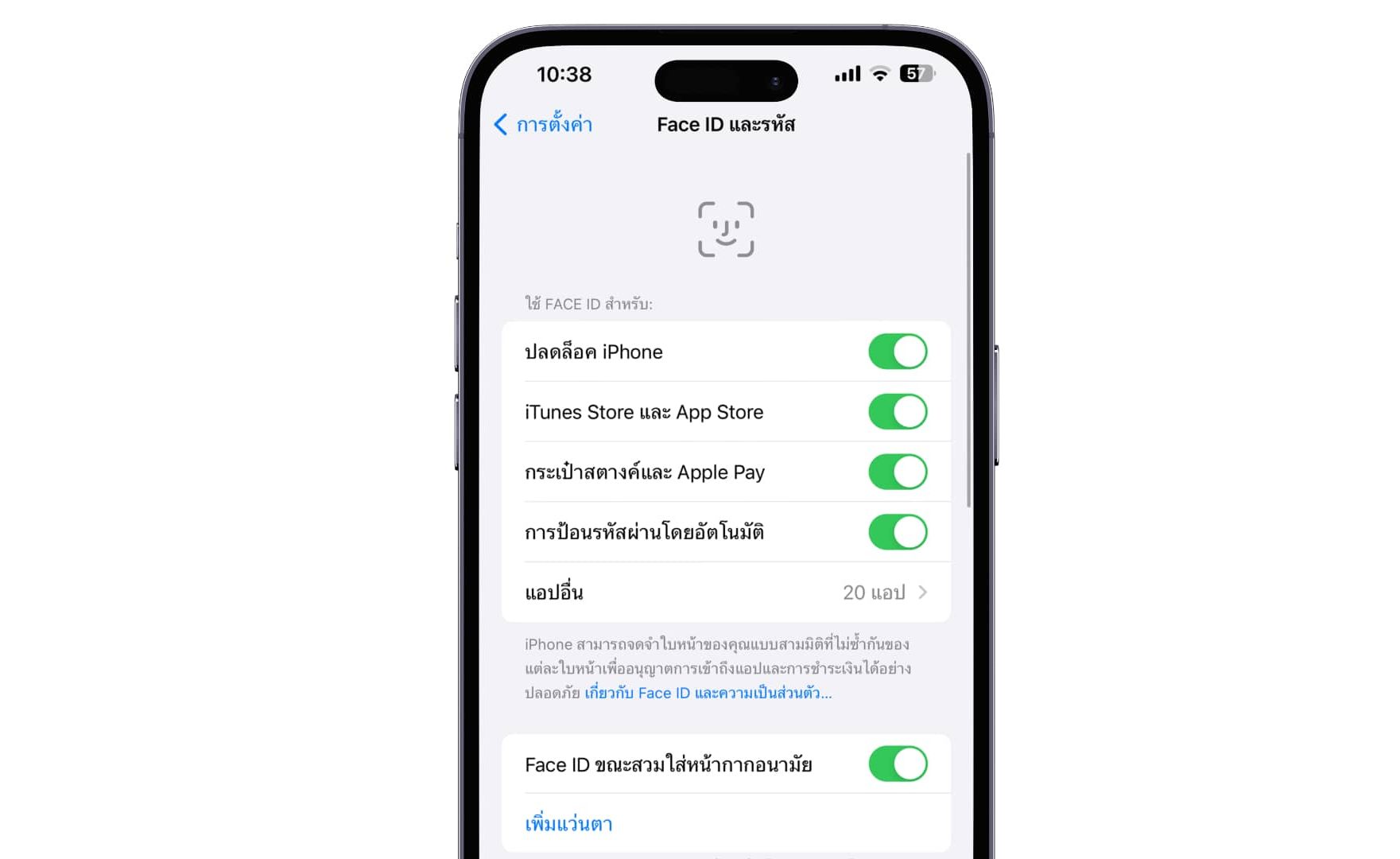 เข้าไปตั้งค่าได้ที่ การตั้งค่า > Face ID และรหัส