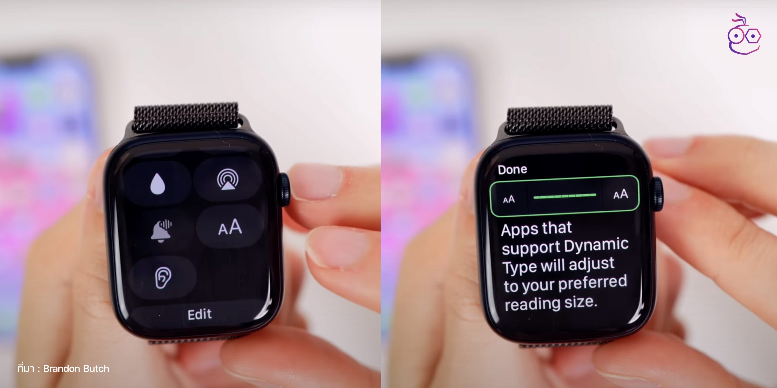 ตัวหนังสือแสดงเลขเปอร์เซ็นแบตเตอรี่เปลี่ยนเป็นสีฟ้ามองแล้วสบายตามากขึ้น และเพิ่มเมนูการเปลี่ยนขนาดข้อความเข้ามา ซึ่งใน watchOS 8 ปรับขนาดข้อความได้มากสุดที่ระดับ 6 แต่ใน watchOS 9 สามารถปรับขนาดข้อความให้ใหญ่ขึ้นได้มากถึงระดับ 9 เลยทีเดียว