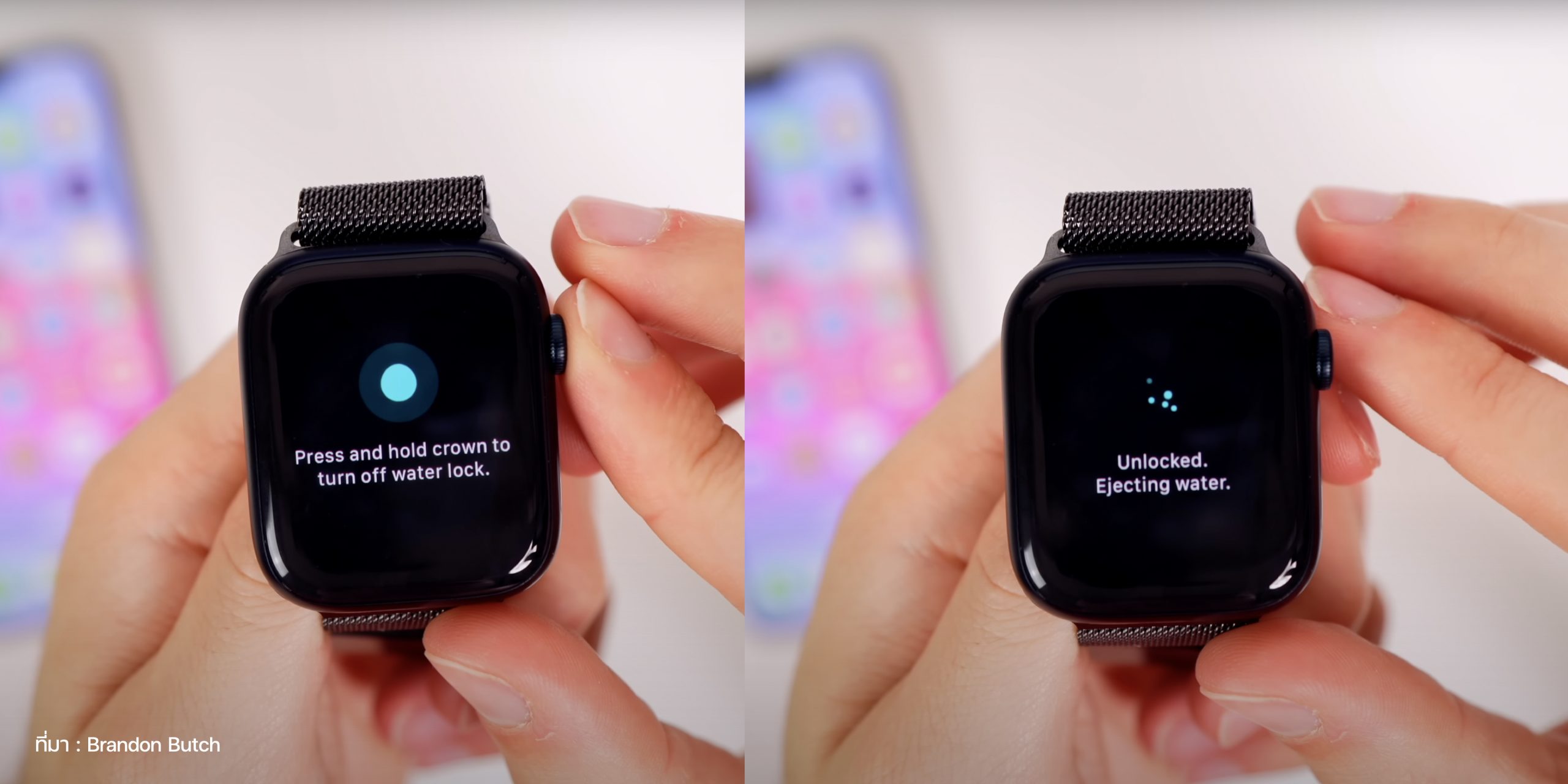 ถ้าหากว่าเป็นนักกีฬาว่ายน้ำ ก็สามารถไล่น้ำออกจากเครื่องได้จากฟีเจอร์สัญลักษณ์รูปหยดน้ำที่ Control Center จากนั้นกด Digital Crown ค้างไว้เพื่อไล่น้ำออกแทนการหมุน Digital Crown เพิ่มความสะดวกมากขึ้นหากต้องว่ายน้ำบ่อย ๆ