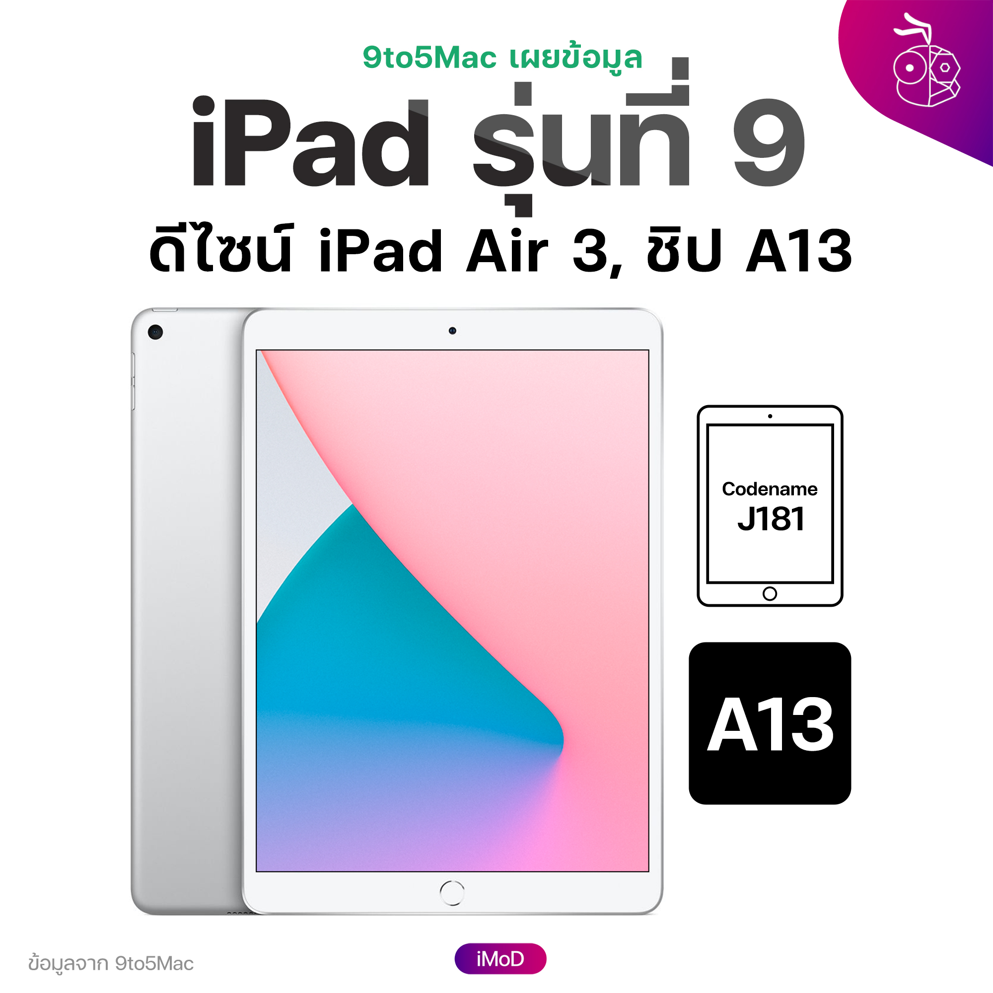 ถัดมา 9to5Mac ก็ได้รายงานว่า iPad รุ่นเริ่มต้นตัวใหม่จะใช้ดีไซน์เหมือน iPad Air 3 ที่มีตัวเครื่องบาง ใช้หน้าจอ 10.5 นิ้ว ต่างจาก iPad รุ่นที่ 8 ที่ใช้หน้าจอ 10.2 นิ้ว