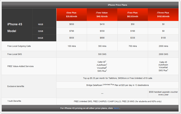 ราคาที่ทาง Singtel ได้ประกาศนั้นมีเฉพาะแบบที่ขายพร้อมแพ็คเก็จมีดังนี้