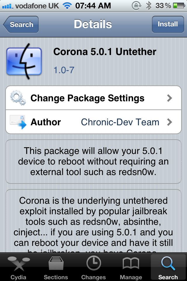 ออกอัปเดตแล้วสำหรับ Corona 1.0.7 เวอร์ชันนี้แก้ไขปัญหาการทำงานของ iBooks ที่ผิดปกติ ซึ่งก่อนหน้านี้ทาง Dev Team ได้ปล่อย Redsn0w 0.9.10b5 ออกมาแก้ก่อนแล้ว แต่สำหรับหากใครที่ยังไม่ได้แก้ด้วย Redsn0w ตอนนี้สามารถอัปเดตผ่าน Cydia ด้วย Corana 1.0.7 ได้เลย