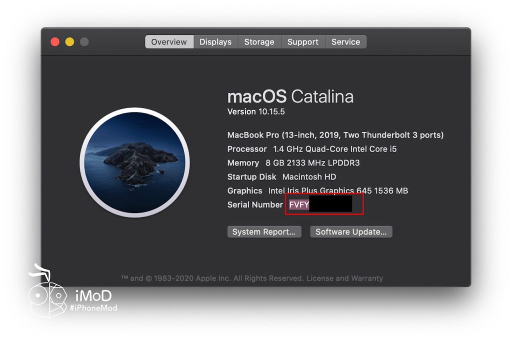 Apple > About This Mac ดูในส่วน Overview เราจะเห็น Serial Number ให้คัดลอกไว้