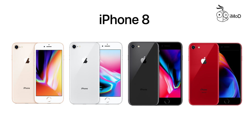 ส่วน iPhone 8 มีให้เลือก 4 สี ได้แก่ สีเงิน และสีทอง ที่มีด้านหน้าเป็นสีขาว ส่วนสีเทาสเปซเกรย์ และสีแดง (PRODUCT)RED ด้านหน้าตัวเครื่องจะเป็นสีดำ