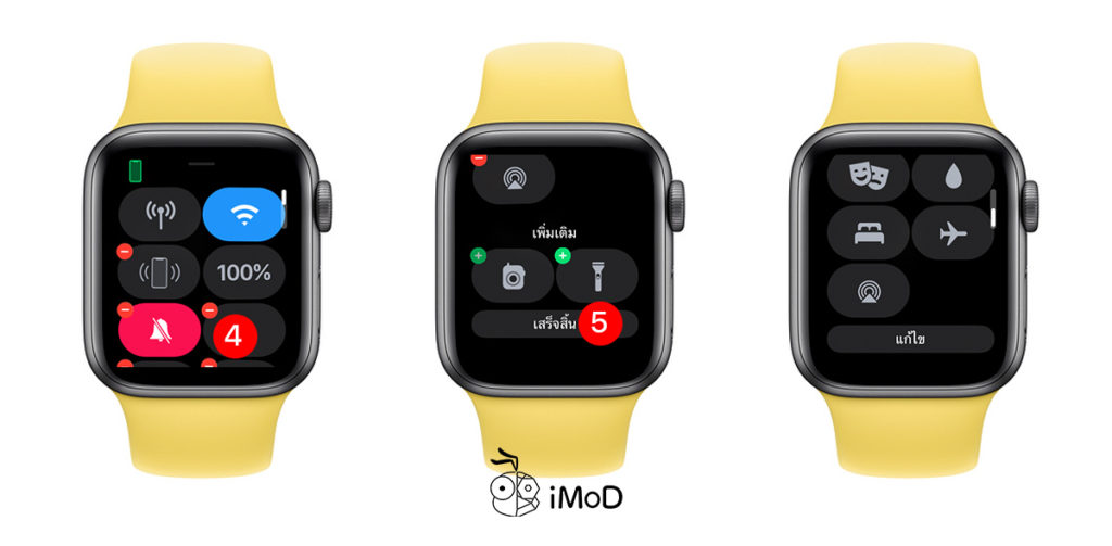 สำหรับการซ่อนไอคอนใน Control Center บน Apple Watch นั้นก็จะอยู่ในส่วนของการจัดการ Control Center โดยผู้ใช้ปัดหน้าจอจากขอบด้านล่างขึ้นเปิดดูเมนูทั้งหมด จากนั้นเลื่อนลงมาด้านล่าง แล้วแตะแก้ไข