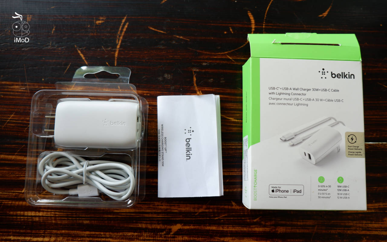 โดยเราสามารถใช้งานเสียบสายชาร์จทั้ง 2 ช่องนี้พร้อมๆ กันได้ ซึ่งทาง Belkin เองก็ยังเคลมให้อีกด้วยว่า “สามารถชาร์จเร็วจาก 0-50% ภายในเวลา 30 นาที”