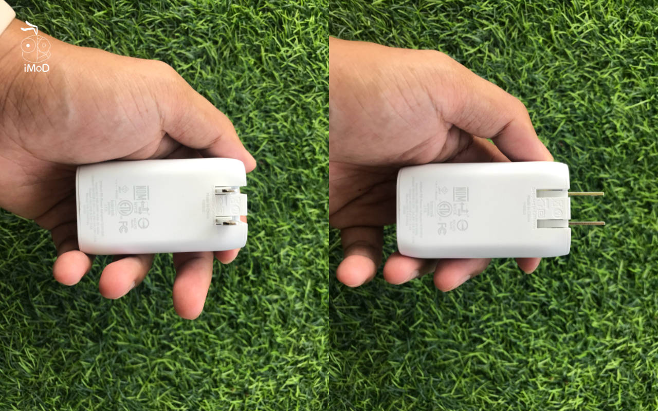และที่เป็นเอกลักษณ์ของตัวอะแดปเตอร์นี้ ก็คือ ‘หัวปลั๊ก’ ที่คุณสามารถพับเพื่อเสียบในแนวนอนหรือดันขึ้นเพื่อเสียบปลั๊กในแนวตั้งได้