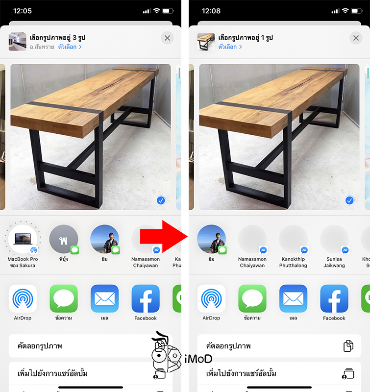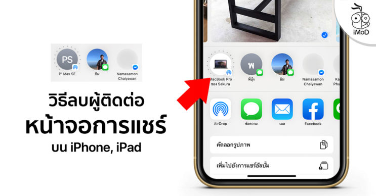 วิธีลบรูปผู้ติดต่อ (Contact) ออกจากหน้าจอการแชร์รูปภาพหรือไฟล์บน iPhone, iPad