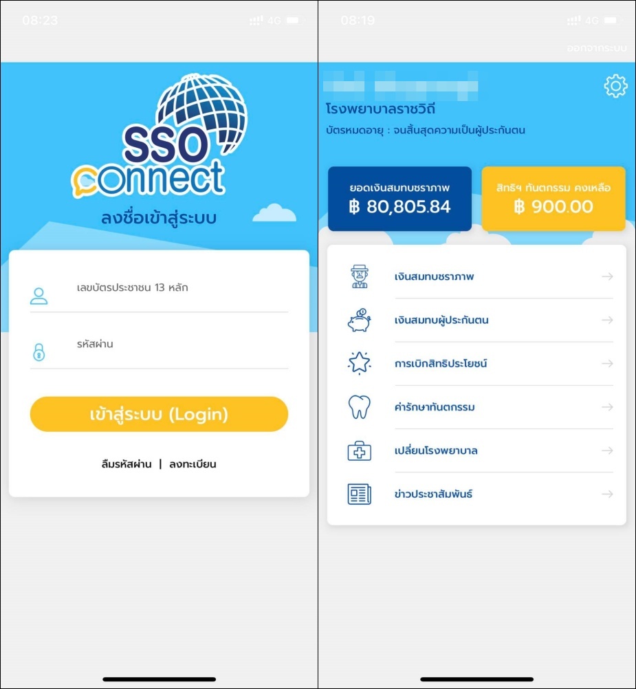 ขั้นตอนแรกก็คือใส่เลขบัตรประชาชนตามด้วยรหัสผ่าน ซึ่งเราเข้าใจว่าคุณคงจำไม่ได้ว่ามันคืออะไรดังนั้นก็กด “ลืมรหัสผ่าน” เพื่อรอรับ OTP ได้เลย (ฮา) หลังจากเข้ามาแล้วก็จะสามารถ เช็คยอดเงินสมทบชราภาพ และ สิทธิฯ ทัตกรรม (ทำฟัน) คงเหลือได้เลย และก็สามารถดูโรงพยาบาลที่สังกัดอยู่รวมถึงอีกหลายอย่างด้วยกัน