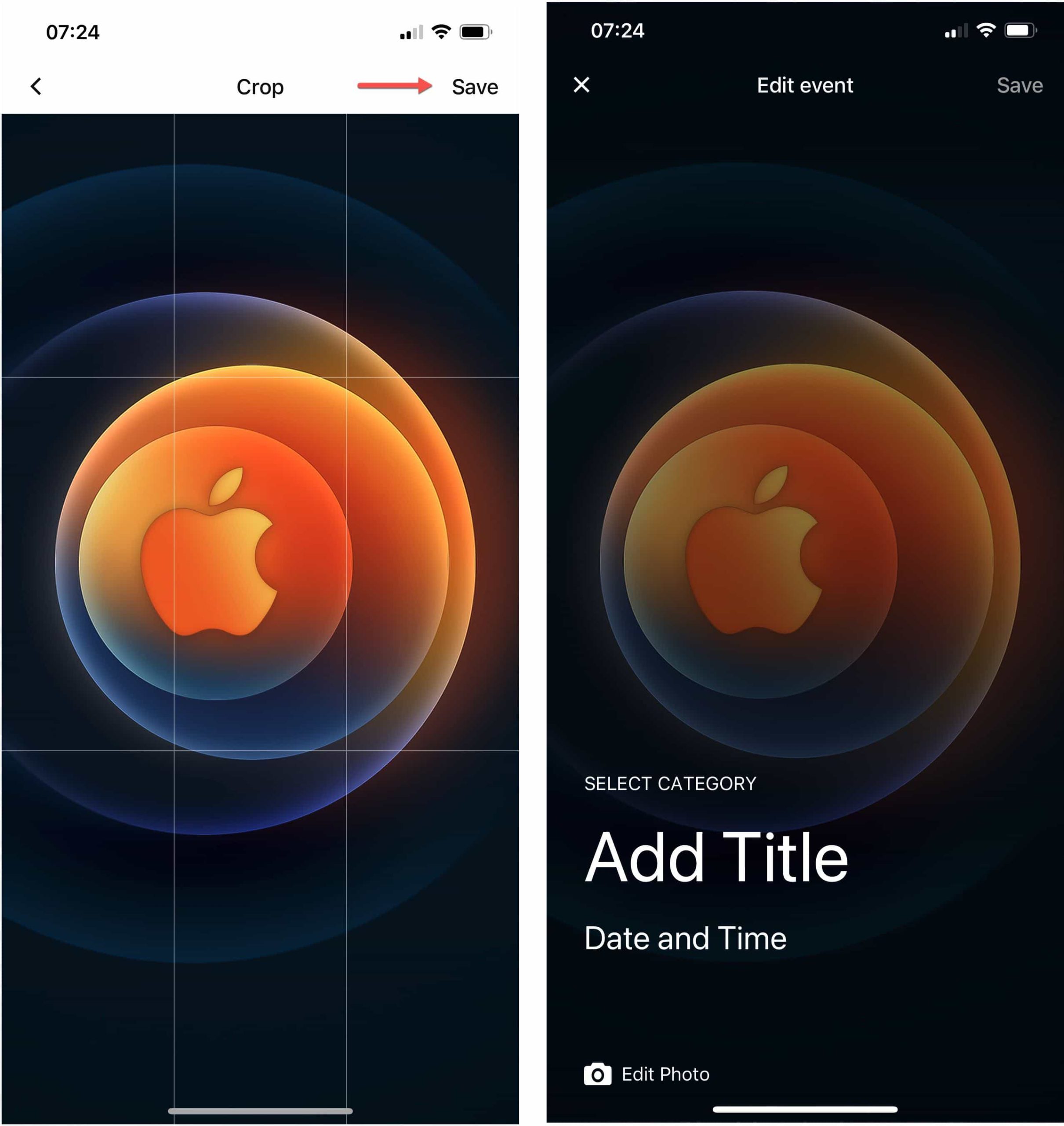 จัดวางตำแหน่งภาพให้เหมาะสม แล้วแตะ Save