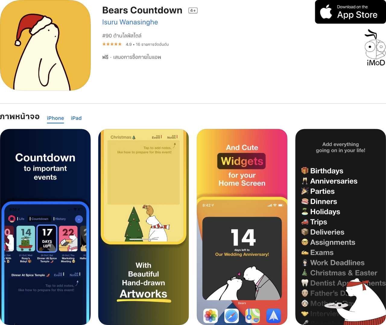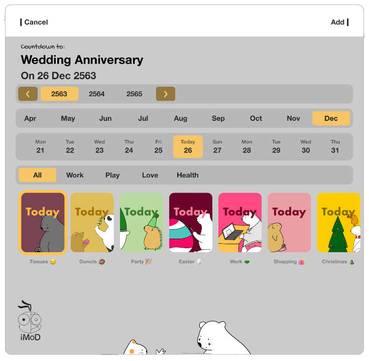 แอปนับเวลาถอยหลังสู่วันเกิด, วับครบรอบ, วันปีใหม่, วันหยุด หรือแม้กระทั่งวันกำหนดส่งงาน (deadlines) – ชูความสวยงามมาด้วย ‘เจ้าหมี Bears’ สุดน่ารัก งานศิลปะวาดด้วยมือพร้อมจานสีพาสเทลที่ทำให้ทุกเหตุการณ์ของคุณมีชีวิตชีวา