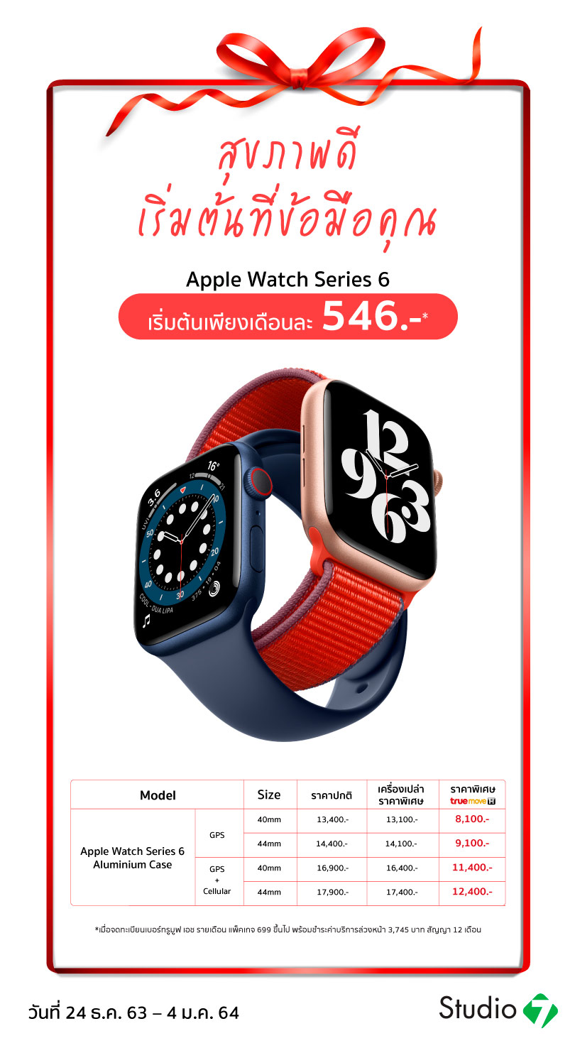 Apple Watch Series 6 ผ่อนเริ่มต้น 564 บาท* ต่อเดือนที่ Studio 7 วันนี้ – 4 ม.ค. 64