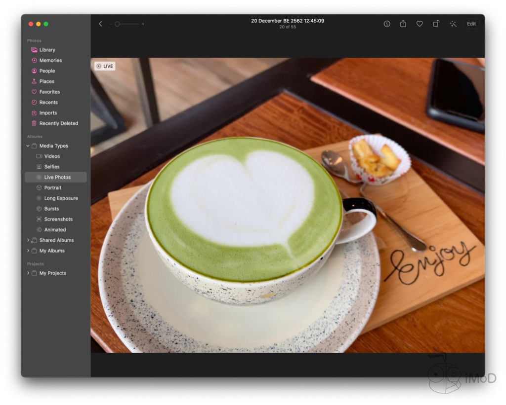 สำหรับบน Mac เราก็สามารถเปลี่ยนรูปภาพหลักของ Live Photos ได้เช่นกัน โดยไปที่แอป Photos > ส่วนอัลบั้มให้เลือก Live Photos จากนั้นก็เลือกรูปภาพที่ต้องการ