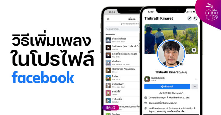 Facebook ได้เปิดให้ผู้ใช้ในไทยเพิ่มเพลงในหน้าโปรไฟล์ส่วนตัวได้แล้ว เพิ่มสีสันและให้เพื่อนรับรู้ว่าเราชอบเพลงแบบไหน ทำอย่างไร ชมกันเลย