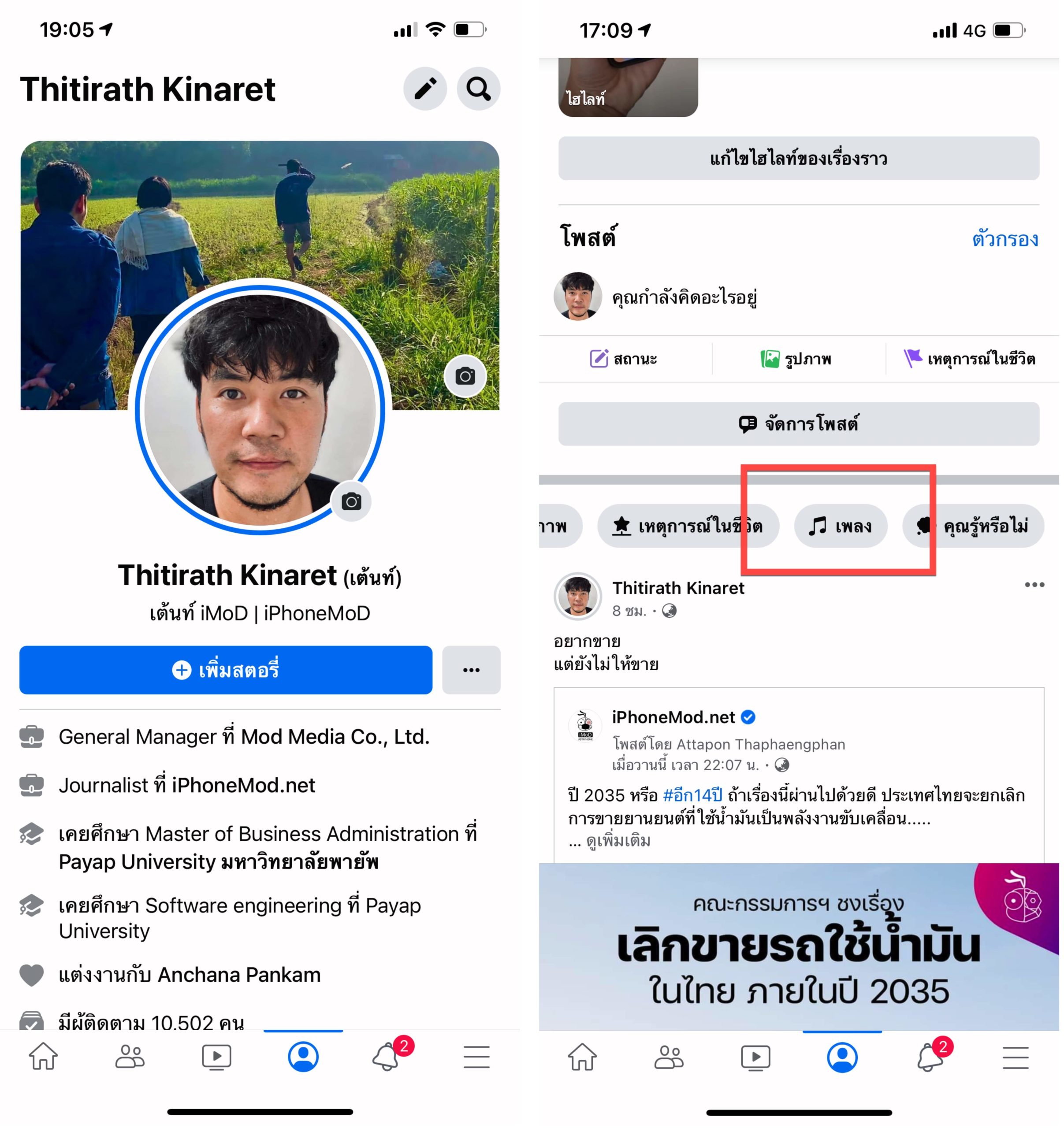 ฟีเจอร์เพลงในโปรไฟล์เปิดใช้งานแล้วบนแอป Facebook ในไทย สามารถเข้าไปใช้งานกันได้เลย (อัปเดตแอปให้เป็นเวอร์ชันล่าสุดด้วย)