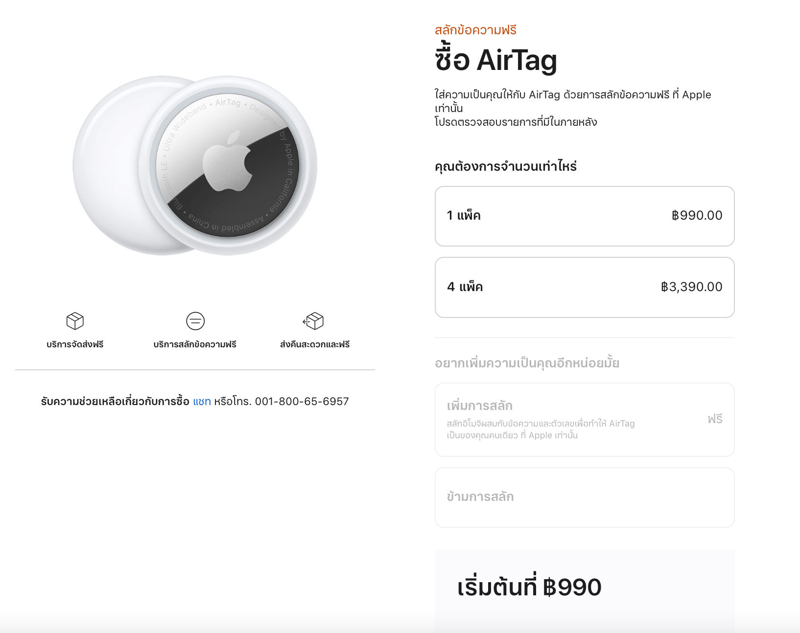 AirTag ราคาชิ้นละ 990 บาทไทย