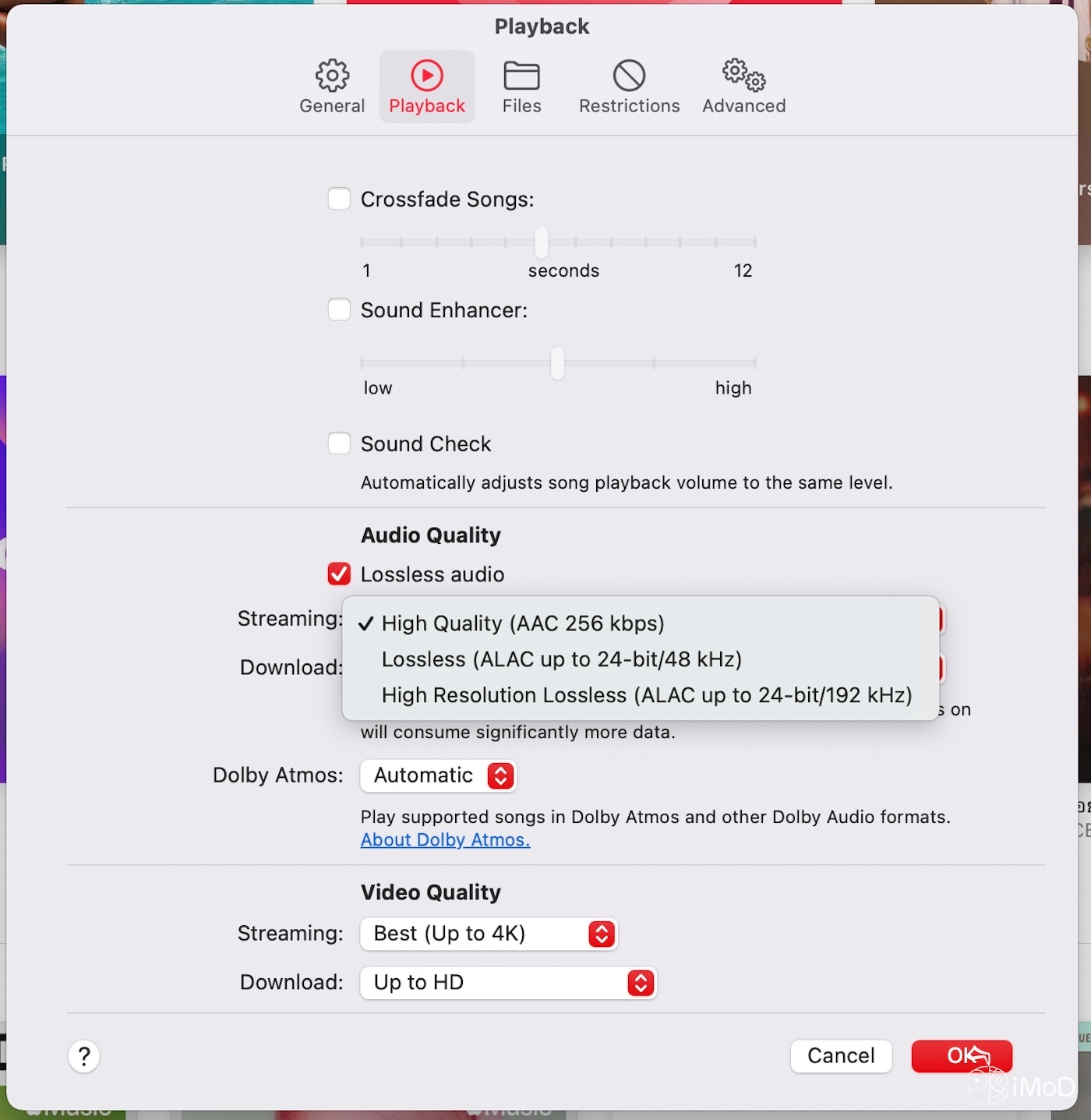 จากนั้นเลือกคุณภาพสำหรับการ Streaming และการดาวน์โหลดเพลงได้เลย ค่าปกติจะอยู่ที่ ACC 256 kbps แนะนำให้เลือกที่ Lossless (ALAC up to 24-bit/48 kHz) เนื่องจากเพลงส่วนใหญ่ใน Apple Music คุณภาพเสียงจะอยู่ประมาณ 24-bit/44.1 KHz ซึ่งถือว่าอยู่ในระดับที่ดีมาก ๆ สำหรับผู้ใช้งานทั่วไปแล้ว