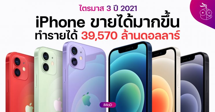 จำนวนผู้ใช้ iPhone ทั้งผู้ใช้รายใหม่และรายเก่า (ที่อัปเกรดมาเป็นรุ่นใหม่) เป็นจุดสำคัญที่ทำให้รายจาก iPhone เพิ่มสูงมากในไตรมาส 3 ปี 2021 นี้ มีรายได้จากการขาย iPhone มากถึง 39,570 ล้านดอลลาร์ มากกว่าปีที่แล้วที่ทำได้ 26,418 ล้านดอลลาร์