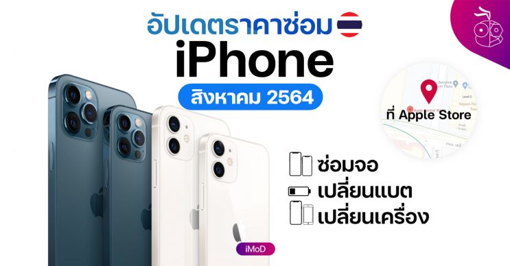ราคาซ่อมจอ เปลี่ยนจอ เปลี่ยนแบต เปลี่ยนเครื่อง iPhone จาก Apple | ส.ค. 64 (2021)