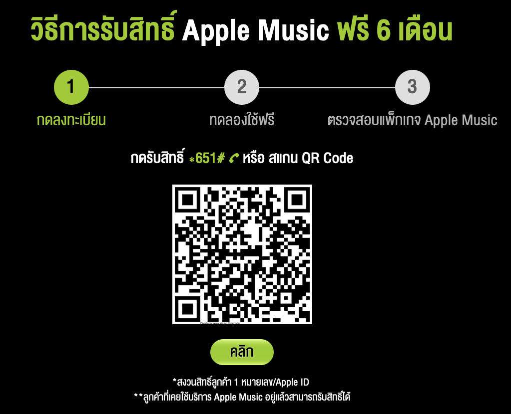 - ลูกค้าที่เคยใช้บริการ Apple Music อยู่แล้วสามารถรับสิทธ์ิได้