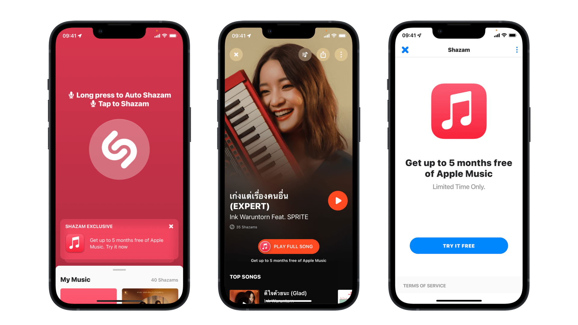 เพื่อเป็นการเฉลิมฉลองช่วงสิ้นปี ผู้ใช้ Shazam ทุกคนสามารถรับสิทธิฟัง Apple Music ฟรีสูงสุด 5 เดือน ไม่ว่าจะเคยเป็นสมาชิก Apple Music มาก่อนหรือไม่ก็ตาม เพียงดาวน์โหลดแอป Shazam บน iPhone หรือ iPad แล้วเริ่มค้นหาเพลงใดก็ได้ที่ได้ยิน ไม่ว่าจะเป็นเพลงออกใหม่ที่ไม่รู้จักมาก่อน หรือเพลงฮิตที่ถูกเปิดทุกหนแห่ง เมื่อค้นหาเพลงพบแล้ว จะเห็นตัวเลือกให้กดเข้าไปเล่นเพลงที่พบบน Apple Music เพียงแค่กดเข้าไปฟัง คุณก็จะได้รับสิทธิในการทดลองฟัง Apple Music ฟรีสูงสุด 5 เดือนทันที หรือคลิกที่ https://www.shazam.com/applemusic โดยสามารถรับสิทธินี้ได้ตั้งแต่วันนี้จนถึงวันที่ 31 มกราคม 2565