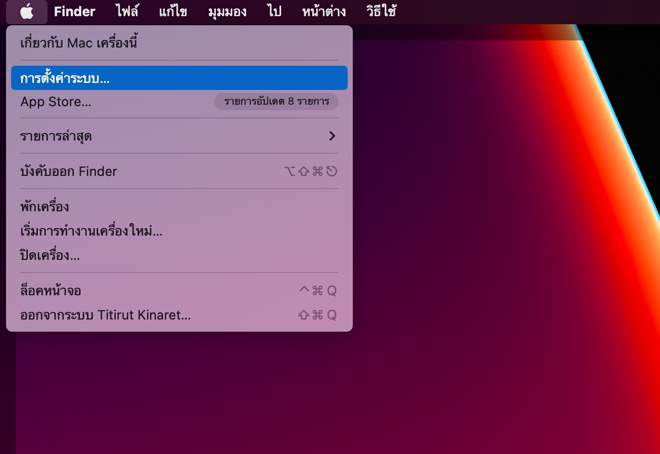 ไปที่โลโก้ Apple > การตั้งค่าระบบ